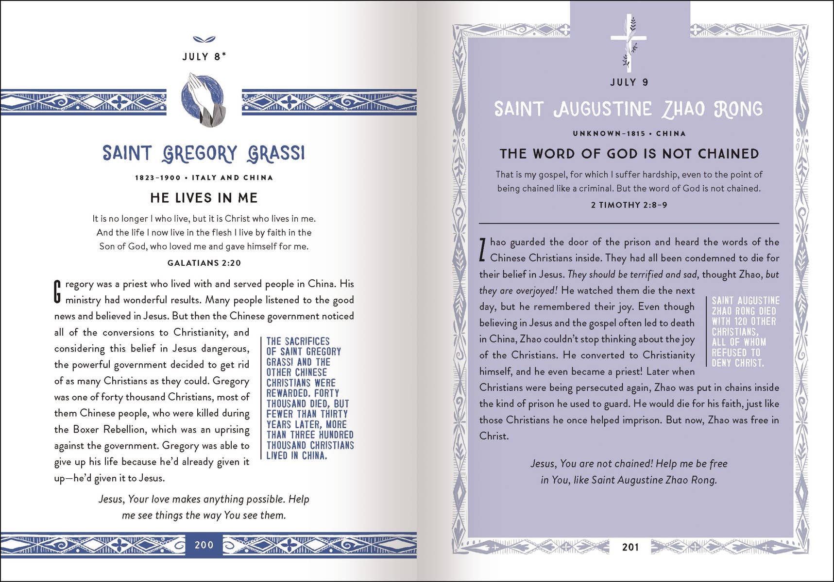 • Inspiring a child's faith with true stories of heroism and faithfully following God, A Saint a Day is an engaging daily devotional for kids ages 8 to 12 that shares some of the most significant and entertaining stories of the saints.